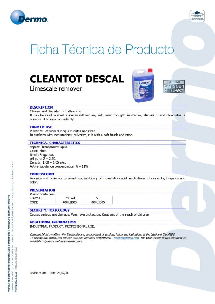 سائل منظف ومزيل للأوساخ والترسبات الجيرية في أرضيات وجدران الحمامات والمراحيض.